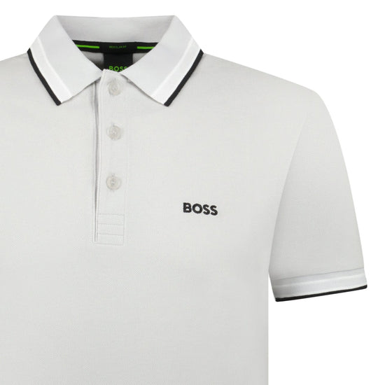 the boss paddy polo shirt in light grey is a refined addition to your smart-casual wardrobe, offering both versatility and effortless style. ideal for office wear or weekend outings, this polo features a sleek solid colourway complemented by a contrasting boss logo on the chest for a subtle yet distinguished finish.