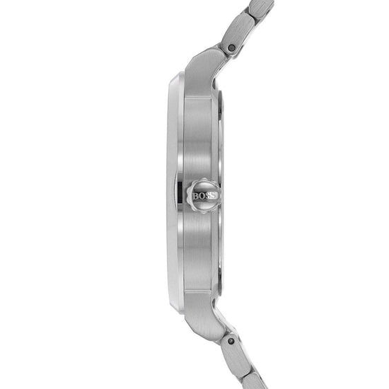 the hugo boss 1502421 symphony watch is a beautifully crafted timepiece for women. featuring a rose gold-tone stainless steel case and bracelet, this watch radiates elegance. its sunray champagne dial is detailed with gold-tone hands and markers, along with three sub-dials displaying day, date, and 24-hour time, offering both style and functionality. this watch is water-resistant up to 30 meters, making it ideal for daily wear while maintaining a sleek and modern look.