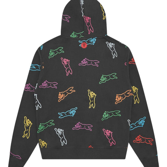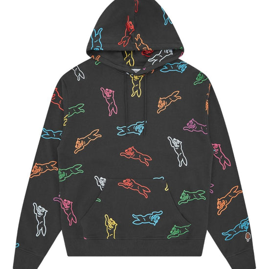 Black multicoloured graphic print hooded design ribbed cuffs kangaroo pocket running dog popover hoodie