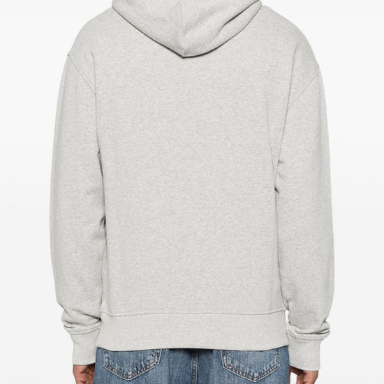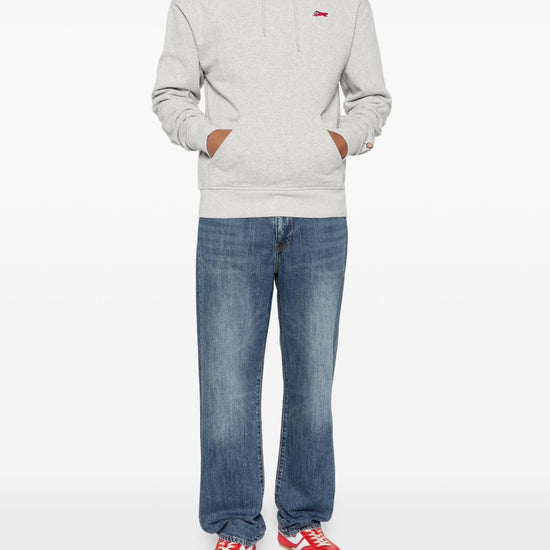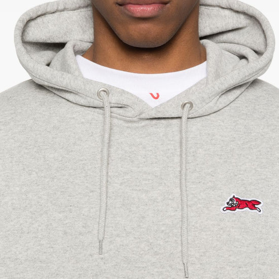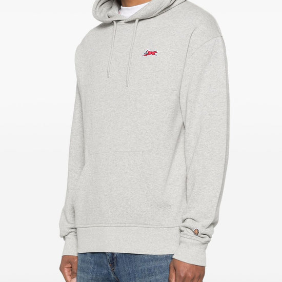Grey patch detail drawstring hood pouch pocket long sleeves ribbed cuffs running dog cotton hoodie