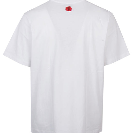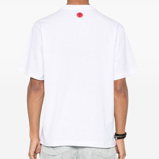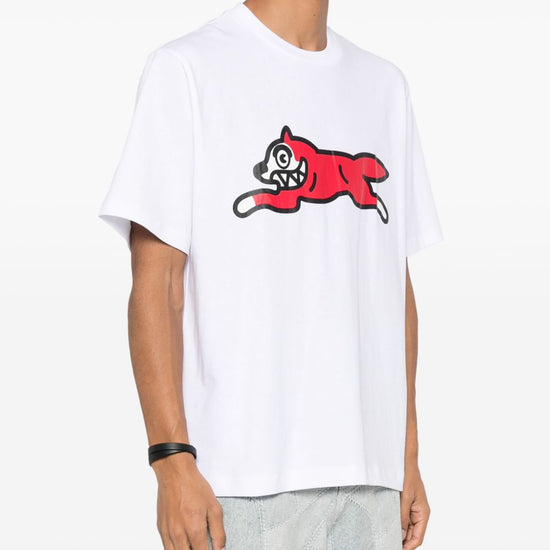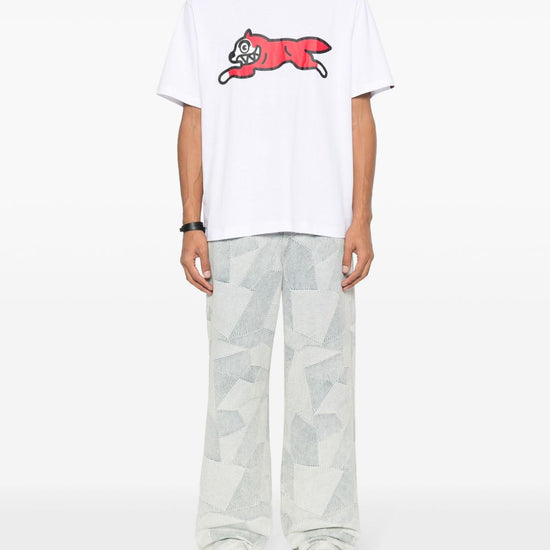 Optical white cotton jersey texture graphic print to the front logo print to the rear crew neck short sleeves straight hem running dog cotton t-shirt