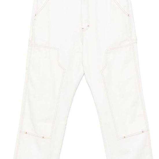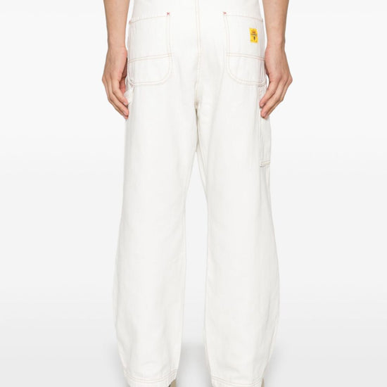 Ecru cotton canvas front button and zip fastening contrast stitching logo patch to the front two diagonal pockets to the sides two rear patch pockets logo patch to the rear straight leg canvas carpenter trousers size and fit - this piece fits true to size. we recommend you get your regular size. model is 1,84m / 6ft 1in wearing size 32 (waist cm)