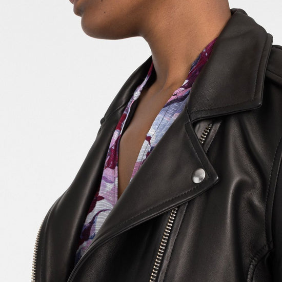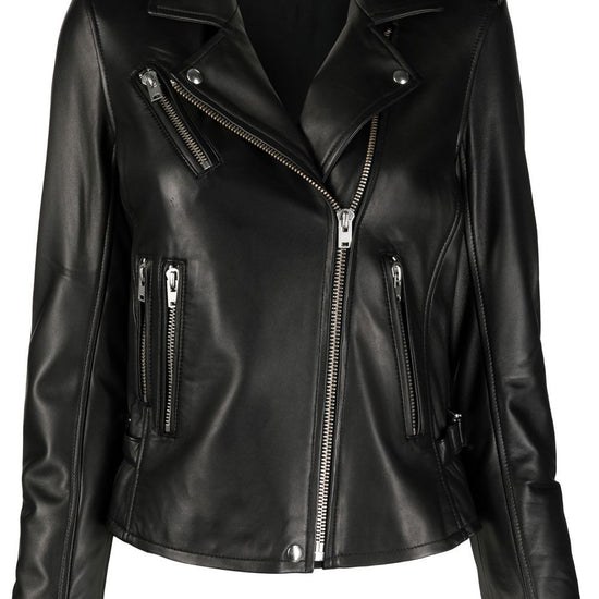 Black lambskin notched lapels front zip fastening long sleeves zip-fastening chest pocket two side zip-fastening pockets straight hem newhan leather jacket size and fit - this piece fits true to size. we recommend you get your regular size<br>model is 1,75m / 5ft 8in wearing size 36 (fr).