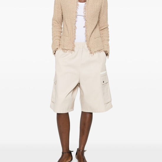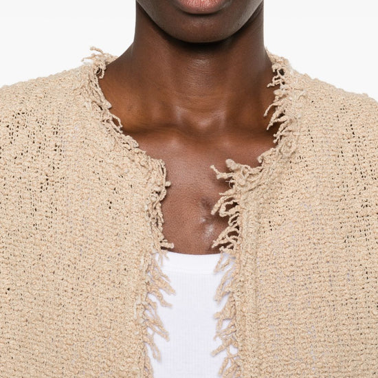 Beige fringed trims open front shavani cotton jacket