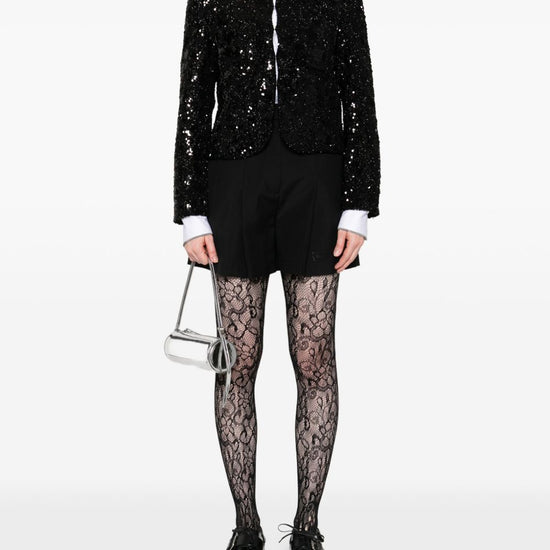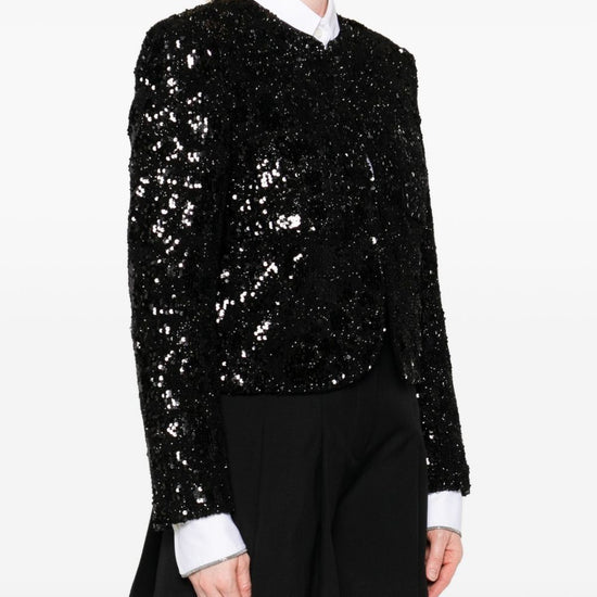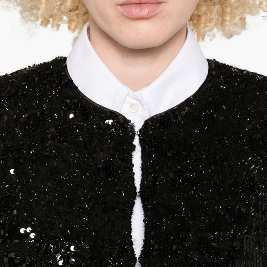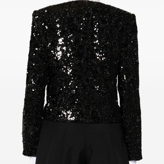 Black sequin embellishment long sleeves cropped length v-neck sequined jacket