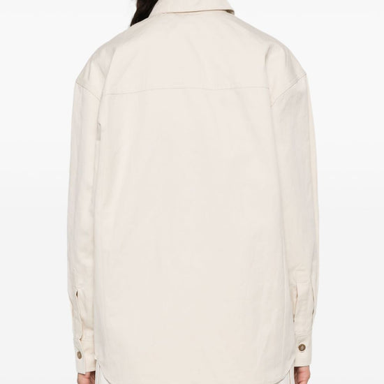 Beige concealed front button fastening two chest patch pockets buttoned cuffs classic collar nolani cotton t-shirt size and fit - this piece fits true to size. we recommend you get your regular size. model is 1,75m / 5ft 8in wearing size 36 (fr)
