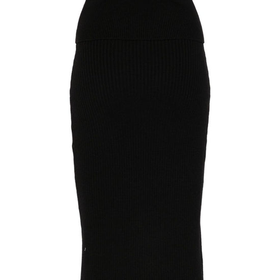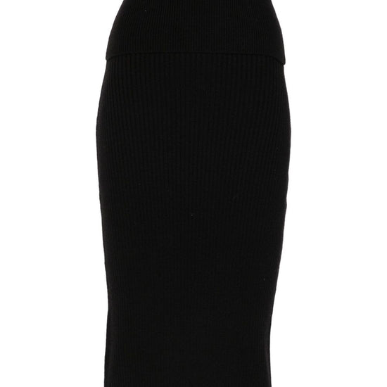 Black ribbed knit mid-length christy wool blend skirt
