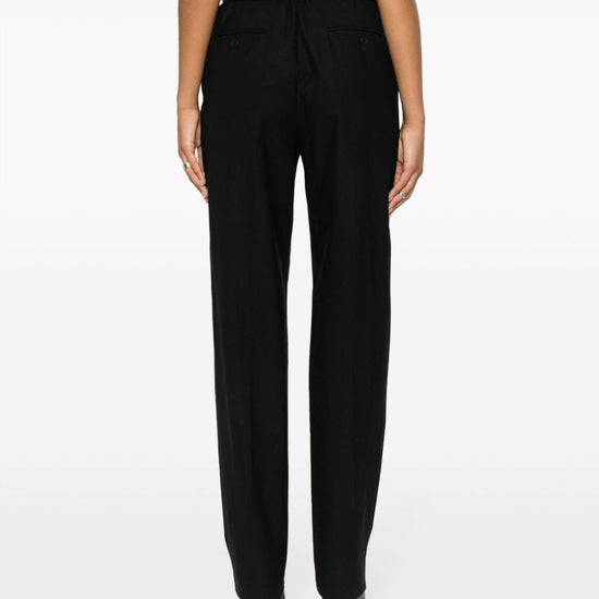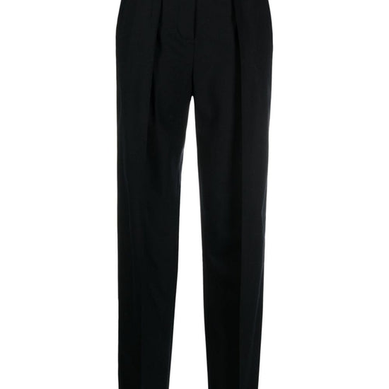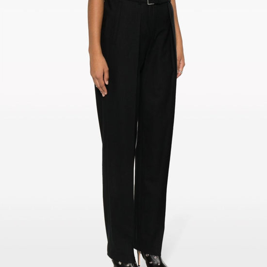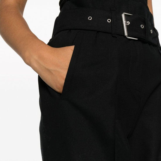Belted tailored trousers from iro featuring black, wool blend, stretch-design, pleat detailing, pressed crease, high waist, belted waist, buckle fastening, two side slit pockets, two rear button-fastening jetted pockets, tailored cut and straight hem. benet high-waisted trousers size and fit - this piece fits true to size. we recommend you get your regular size. model is 1,75m / 5ft 8in wearing size 36 (fr)