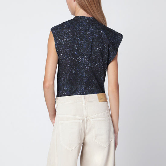ISABEL MARANT Nayda asymmetrical T-shirt with midnight blue print