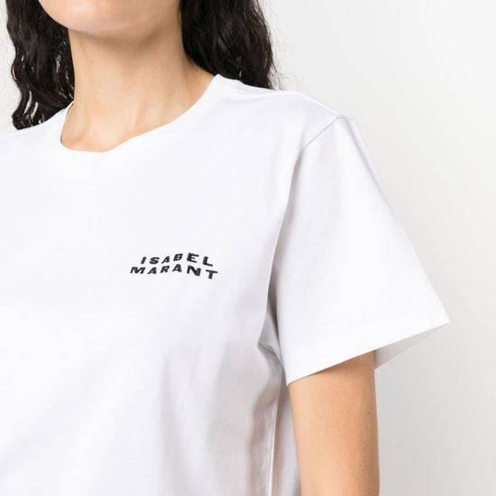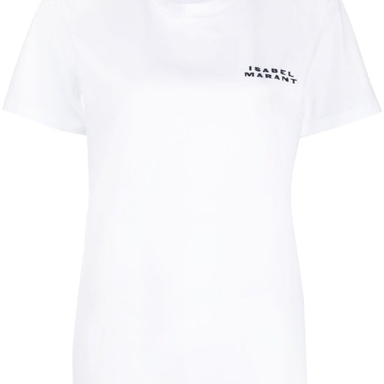 White organic cotton logo print at the chest crew neck short sleeves straight hem this item is made from at least 50% organic materials. vidal cotton t-shirt size and fit - this piece fits true to size. we recommend you get your regular size. model is 1,75m / 5ft 8in wearing size s