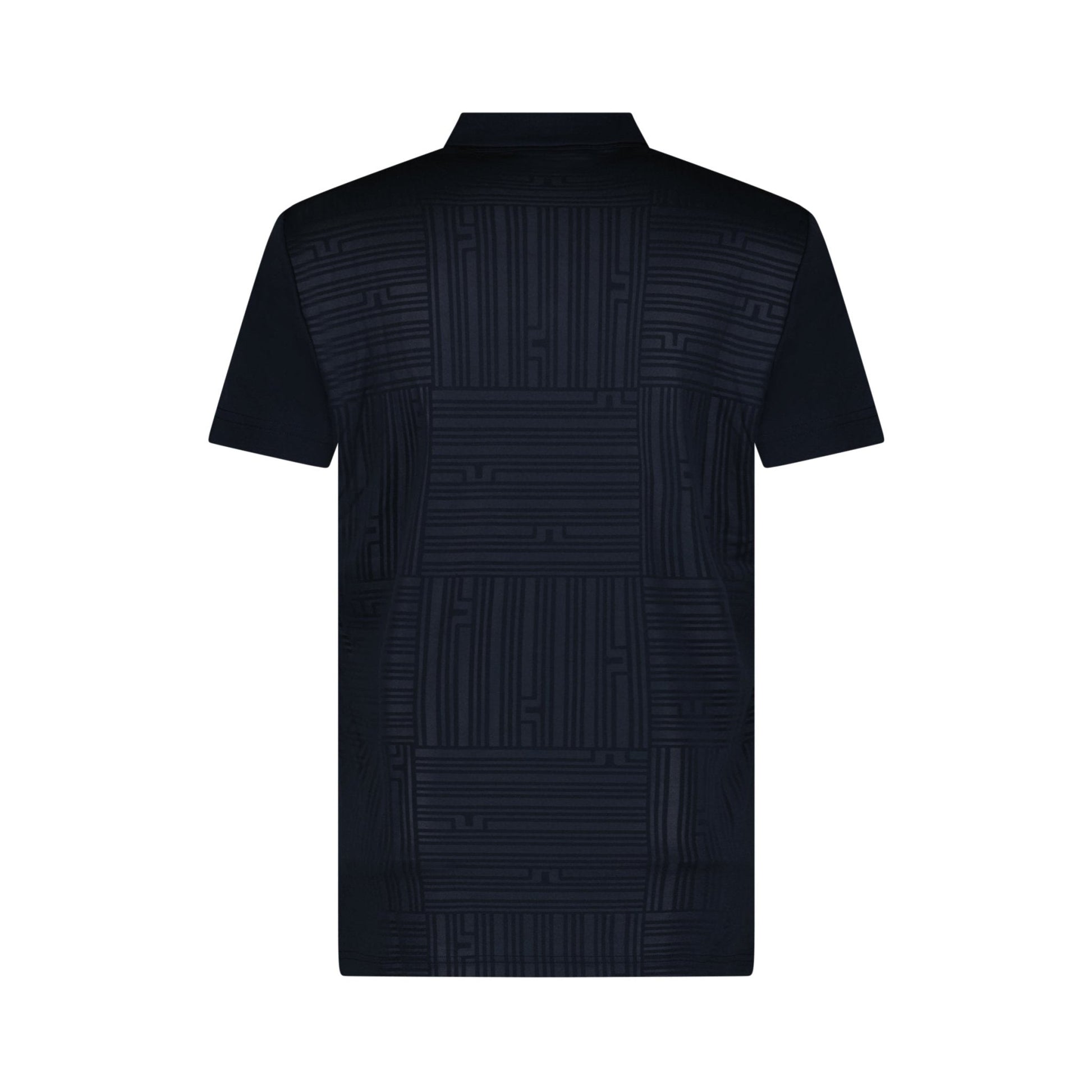 elevate your golfing wardrobe with the j.lindeberg peat golf polo, the perfect blend of classic style and modern design. this polo features a timeless pique look at the front, while the back showcases a seasonal monogram print inspired by our iconic jl logo. with its moisture-wicking and quick-drying capabilities, this piece is ideal for warm days on the course. pair it with the ellott trousers from our collection for a sophisticated summer ensemble that seamlessly combines sportswear with timeless tailoring.