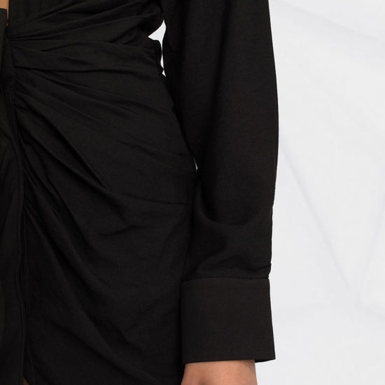 Short dress with long sleeves, deep neckline and knot at the waist. la robe bahia dress size and fit - this piece fits true to size. we recommend you get your regular size. model is 1,75m / 5ft 8in wearing size 36 (fr)