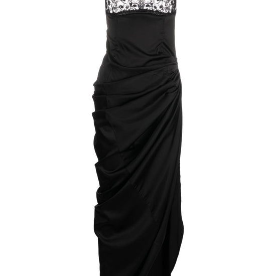 La saudade floral-embroidered asymmetric dress from jacquemus featuring black, adjustable spaghetti straps, square neck, tulle panel, floral embroidery, tulle panel, gathered detailing, open back, draped detailing, asymmetric hem and ankle-length. la saudade longue brodée dress size and fit - this piece fits true to size. we recommend you get your regular size. model is 1,75m / 5ft 8in wearing size 36 (fr)