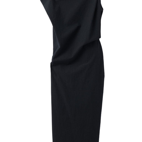 Black draped detailing sleeveless la robe drap midi dress