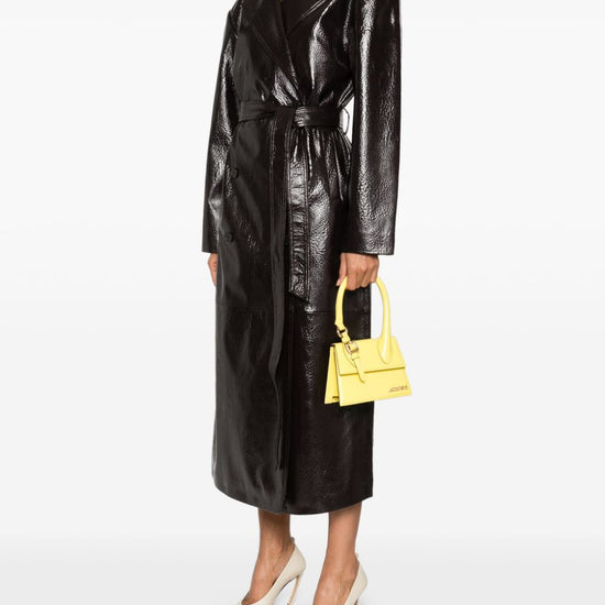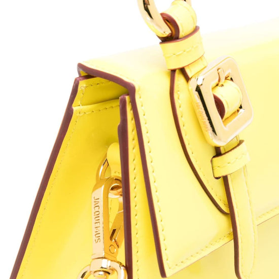 Lemon yellow calf leather brushed finish foldover top with magnetic fastening single rolled top handle adjustable detachable shoulder strap decorative buckle detail logo lettering main compartment internal logo patch internal card slot cotton lining this piece comes complete with a protective dust bag. le chiquito moyen boucle leather handbag size and fit - width 6,69 in / 17 cm
