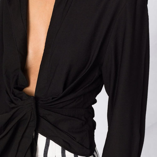Black draped detailing knot detailing classic collar long sleeves la chemise bahia shirt size and fit - this piece fits true to size. we recommend you get your regular size. model is 1,75m / 5ft 8in wearing size 36 (fr)