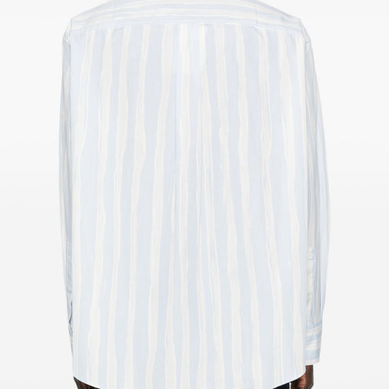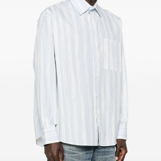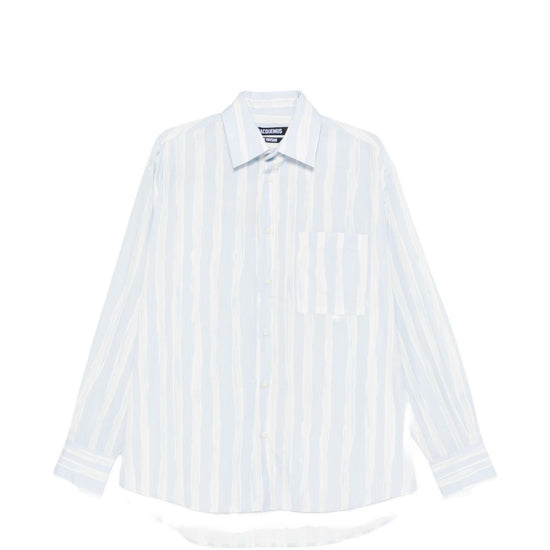 Light blue and light grey stripe print chest patch pocket front button fastening long sleeves buttoned cuffs la chemise camargue shirt