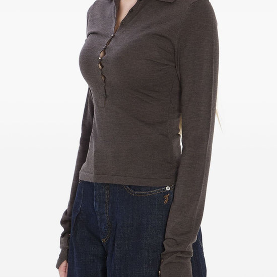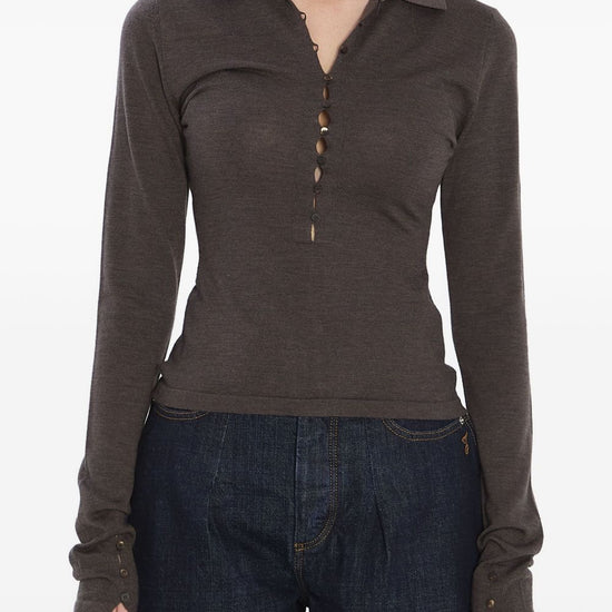 fully buttoned back le polo merino size and fit - this piece fits true to size. we recommend you get your regular size. model is 1,75m / 5ft 8in wearing size 36 (fr)