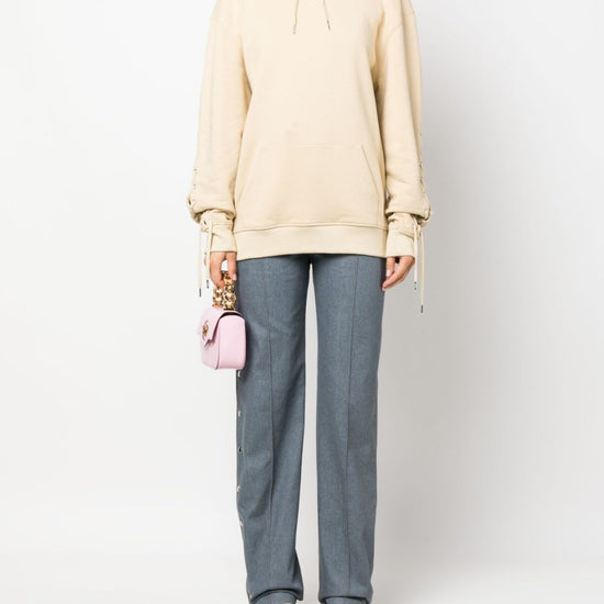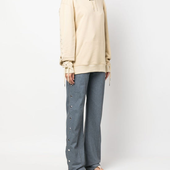 Beige, cotone, ricamo con logo frontale, dettaglio con lacci, cappuccio con coulisse, maniche lunghe e tasca frontale a marsupio. midi, g.collo, righe verticali logo cotton hoodie size and fit - this piece fits true to size. we recommend you get your regular size. model is 1,75m / 5ft 8in wearing size s