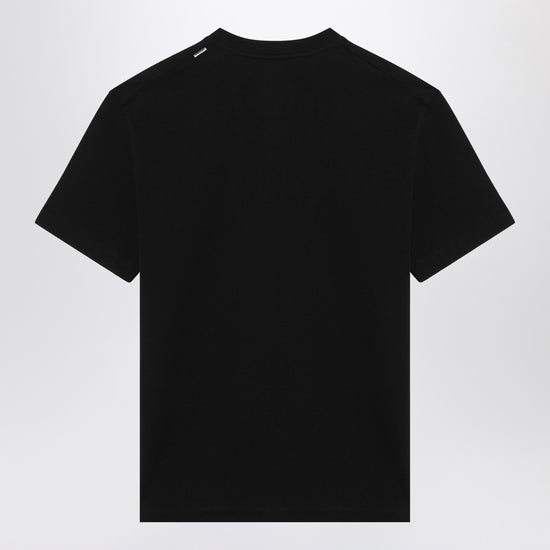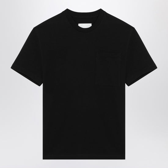 Black cotton t-shirt from jil sander featuring short sleeves, a ribbed crew neck, a patch pocket on the chest and a logo patch on the shoulder. size and fit - model wears size l model measurements: height: 185 cm chest: 105 cm waist: 85 cm hips: 100 cm