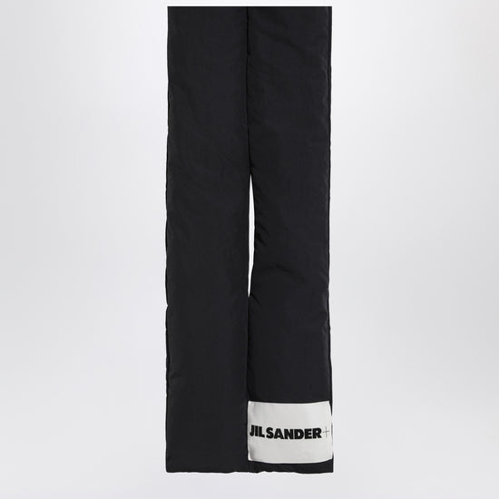 Black scarf by jil sander in padded recycled polyester, featuring quilted detail and lettering logo tag.
