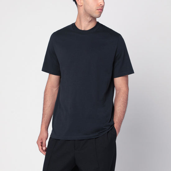 Jil sander t-shirt in dark blue cotton, characterized by short sleeves and a ribbed crew neck. size and fit - model wears size l model measurements: height: 189 cm chest: 104 cm waist: 78 cm hips: 95 cm
