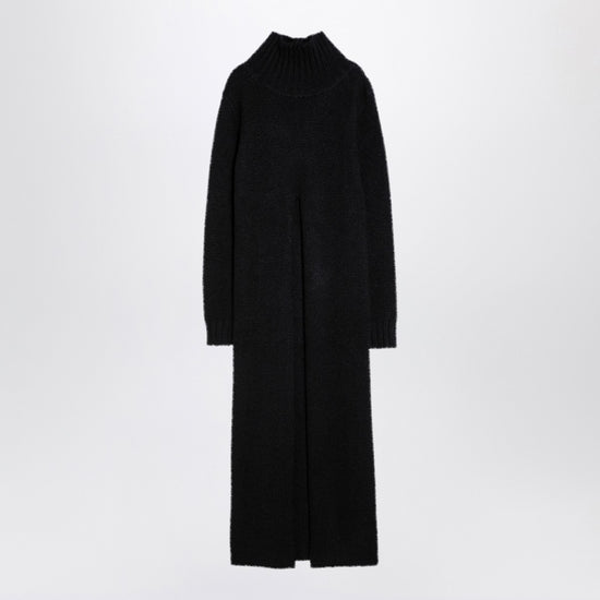 Black alpaca long dress from jil sander featuring a turtleneck design, long sleeves and a deep front slit. size and fit - model wears size 36 fr model measurements: height: 179 cm chest: 82 cm waist: 60 cm hips: 89 cm