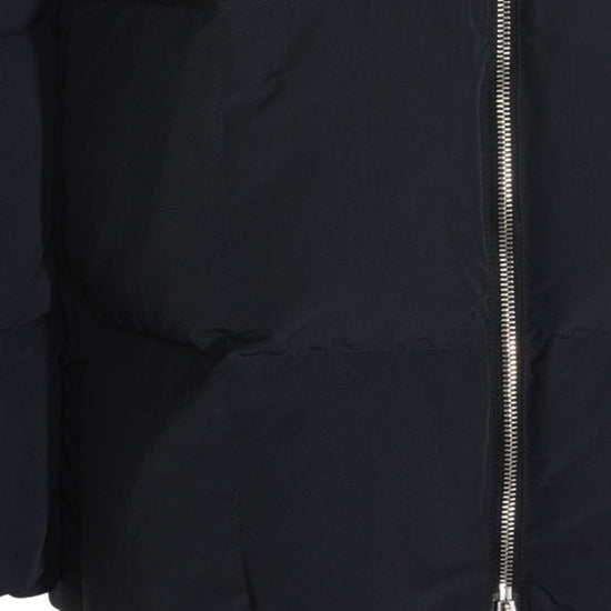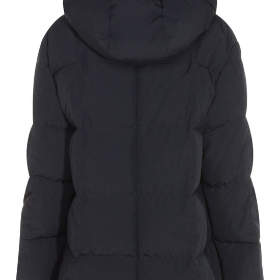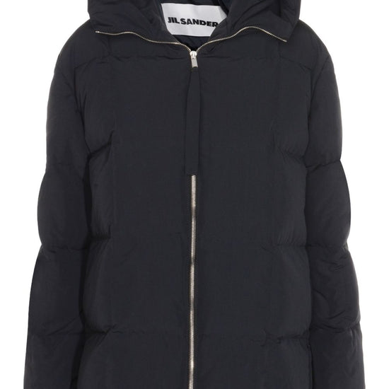 Black hooded zip fastening quilted long sleeves straight hem  hooded down jacket size and fit - this piece fits true to size. we recommend you get your regular size. model is 1,75m / 5ft 8in wearing size s
