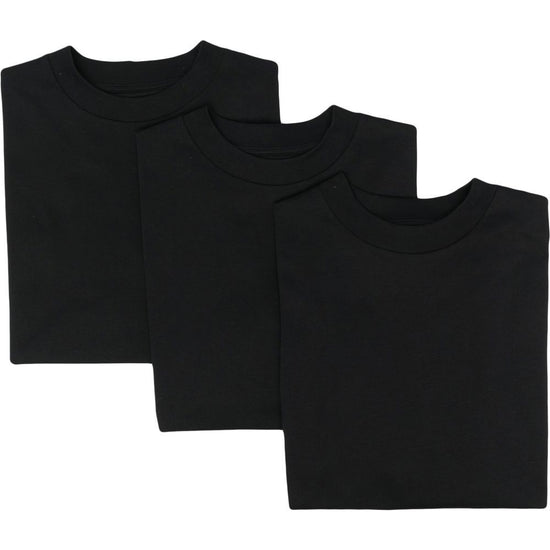 Black cotton logo patch to the side crew neck short sleeves straight hem pack of three logo cotton t-shirt size and fit - this piece fits true to size. we recommend you get your regular size. model is 1,75m / 5ft 8in wearing size s