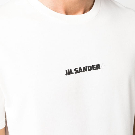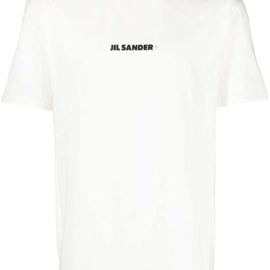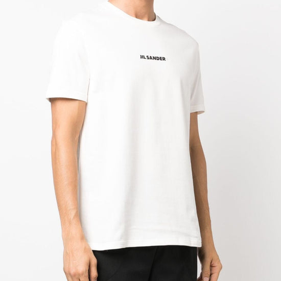 Logo-print cotton t-shirt from jil sander featuring white/black, cotton, logo print to the front, crew neck, short sleeves and straight hem. logo centro logo cotton t-shirt size and fit - this piece fits true to size. we recommend you get your regular size. model is 1,84m / 6ft 1in wearing size m