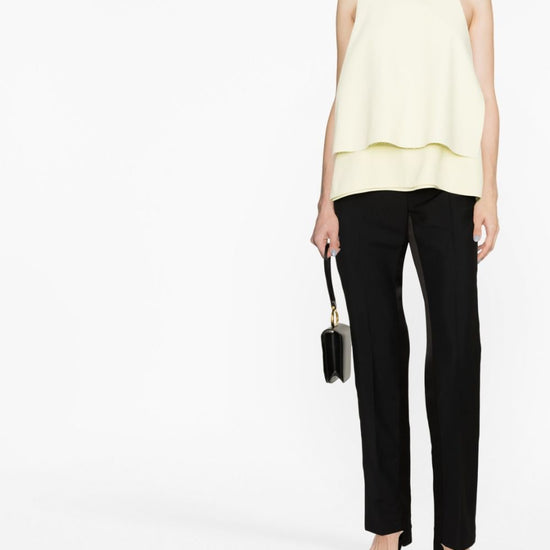 Halterneck open-back top from jil sander featuring yellow, halterneck, open back, sleeveless, tiered skirt and straight hem. halterneck open-back top size and fit - this piece fits true to size. we recommend you get your regular size. model is 1,75m / 5ft 8in wearing size 34 (de)