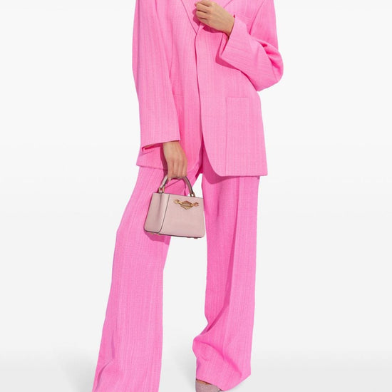 Rose pink leather crystal embellishment pointed toe glitter detailing branded insole mid heel bing 65 glittered leather mules size and fit - heel 2,6 in / 6,5 cm