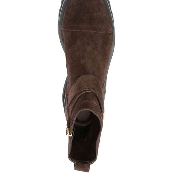 Brown suede upper faux-pearl embellishment side zip fastening meena suede leather boots