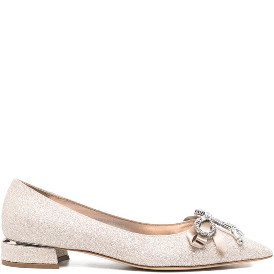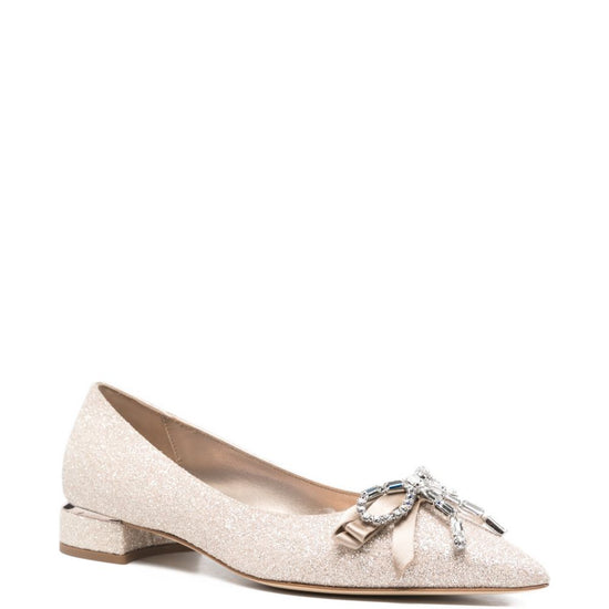 Beige crystal embellishments bow detail pointed toe this piece comes complete with a protective dust bag. auria leather ballet flats
