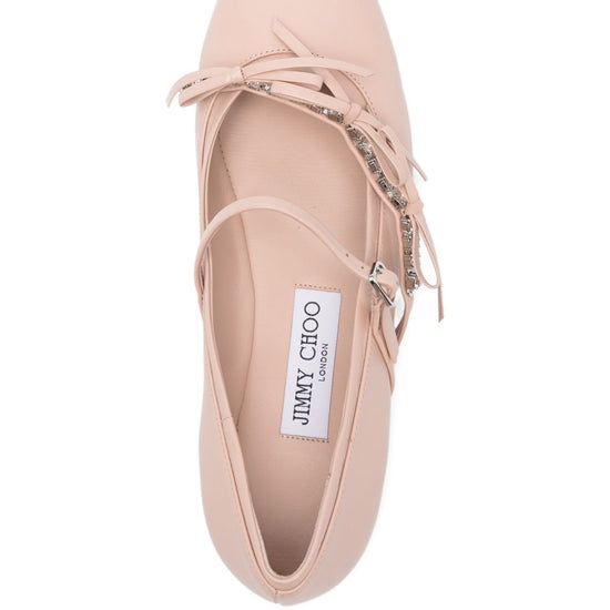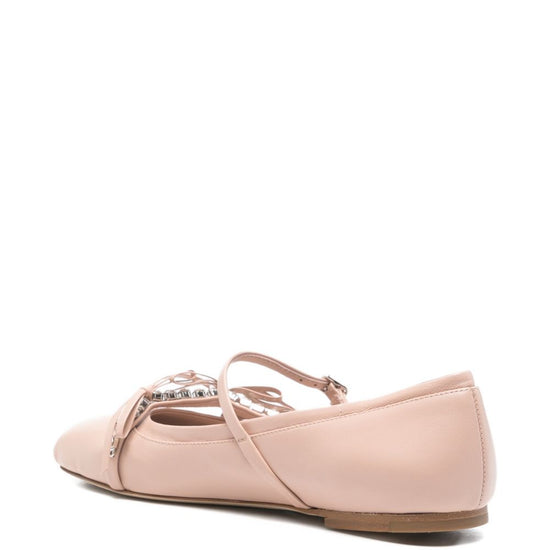 Pink crystal embellished strap buckle fastening bow detail flat sole this piece comes complete with a protective dust bag. loli leather ballet flats