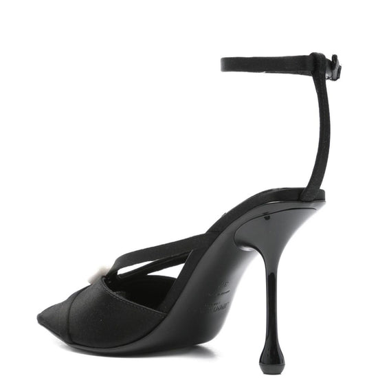 pearl embellishment siva 95 satin sandals size and fit - heel height: 10 cm.