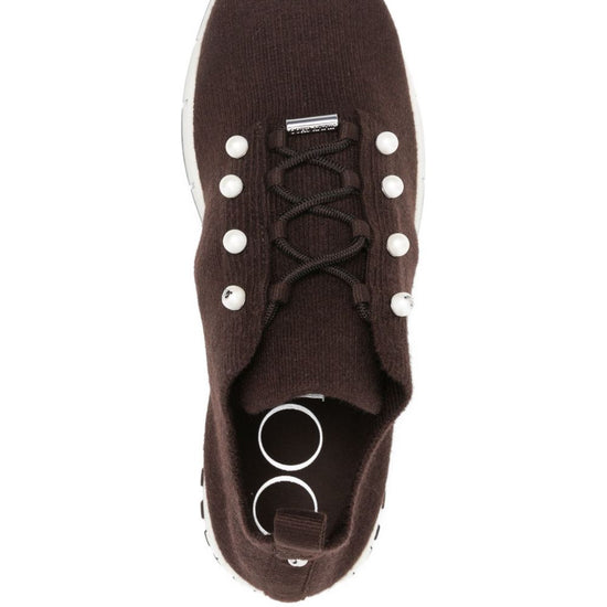 Jimmy Choo Veles Cashmere Melange Knit Trainers with Pearl Buttons