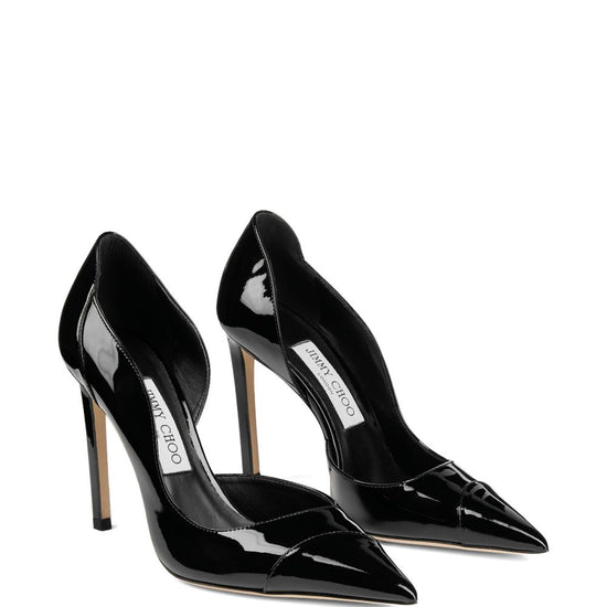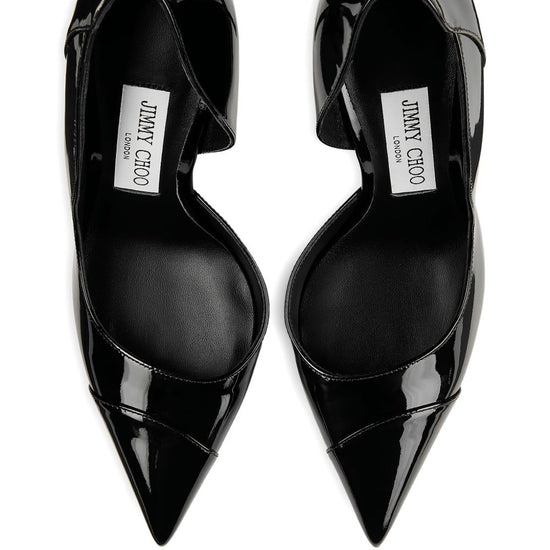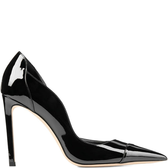 Black patent leather 100mm heel pointed toe cut-out detail leather sole brigitte patent leather pumps size and fit - heel 10 cm .
