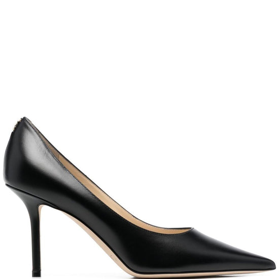 Love pointed-toe 85mm pumps from jimmy choo featuring black, leather, logo plaque, pointed toe, slip-on style and 85mm heel. love 85 leather pumps size and fit - heel 3,3 in / 8,5 cm.