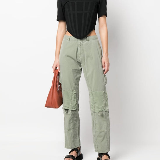 Mid-rise straight-leg work trousers from john elliott featuring light olive green, cotton blend, mid-rise, front button and zip fastening, two front patch pockets, two side patch pockets, two rear patch pockets, straight leg and straight hem. cargo, c/tasche cotton cargo trousers size and fit - this piece fits true to size. we recommend you get your regular size. model is 1,75m / 5ft 8in wearing size s