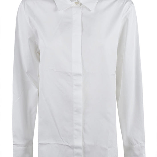 White shirt, front buttons closure, wrist closure closure. button-down cotton shirt size and fit - this piece fits true to size. we recommend you get your regular size. model is 1,75m / 5ft 8in wearing size s