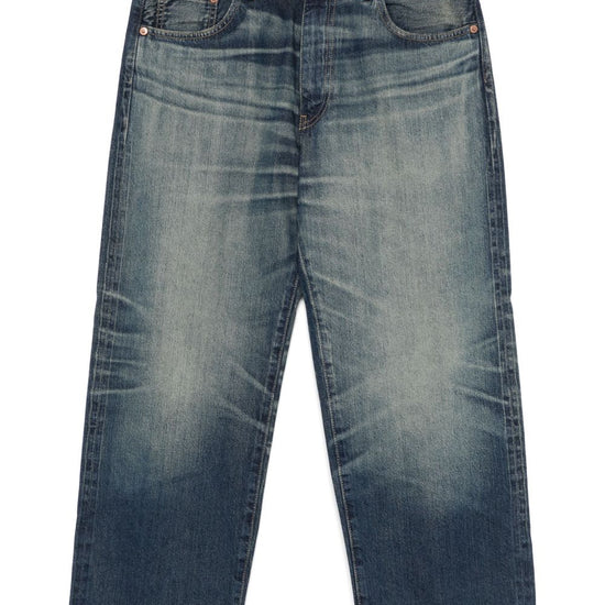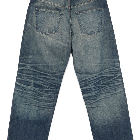 Indigo blue concealed fly and button fastening belt loops classic five pockets cropped leg cropped denim jeans size and fit - this piece fits true to size. we recommend you get your regular size. model is 1,84m / 6ft 1in wearing size m