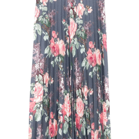 Powder blue interlock twill weave all-over floral print concealed side hook and zip fastening fully pleated unlined a-line straight hem mid-length printed midi skirt size and fit - this piece fits true to size. we recommend you get your regular size. model is 1,75m / 5ft 8in wearing size 1 (num)