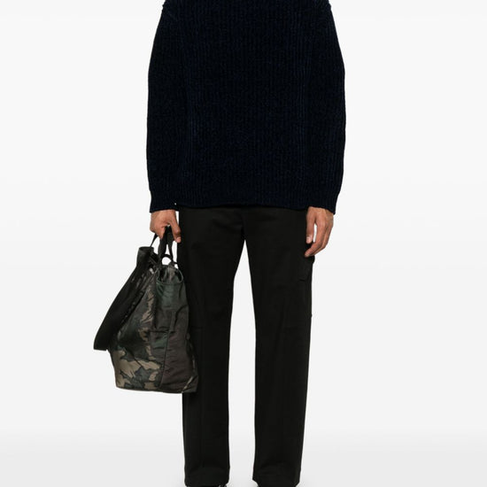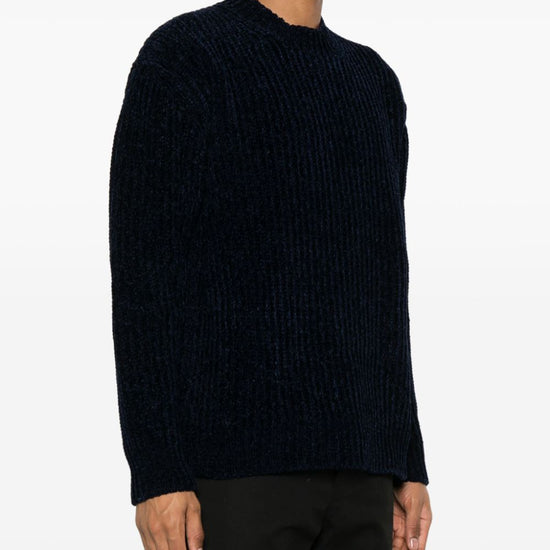Navy blue ribbed knit crew neck long sleeves straight hem wool blend jumper size and fit - this piece fits true to size. we recommend you get your regular size. model is 1,84m / 6ft 1in wearing size 2 (num)