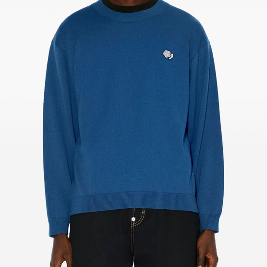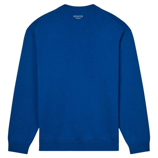 Royal blue crew neck long sleeves straight hem kenzo pop wool sweater size and fit - this piece fits true to size. we recommend you get your regular size. model is 1,84m / 6ft 1in wearing size m