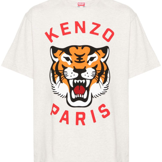 Grey/multicolour cotton jersey texture mélange effect logo print to the front signature tiger motif crew neck short sleeves straight hem when buying this unisex item, keep in mind that it is graded in standard men's sizing. lucky tiger cotton t-shirt size and fit - this piece fits true to size. we recommend you get your regular size. model is 1,84m / 6ft 1in wearing size m