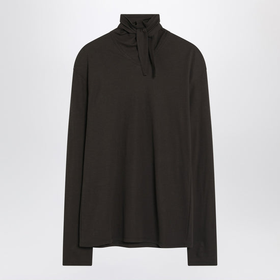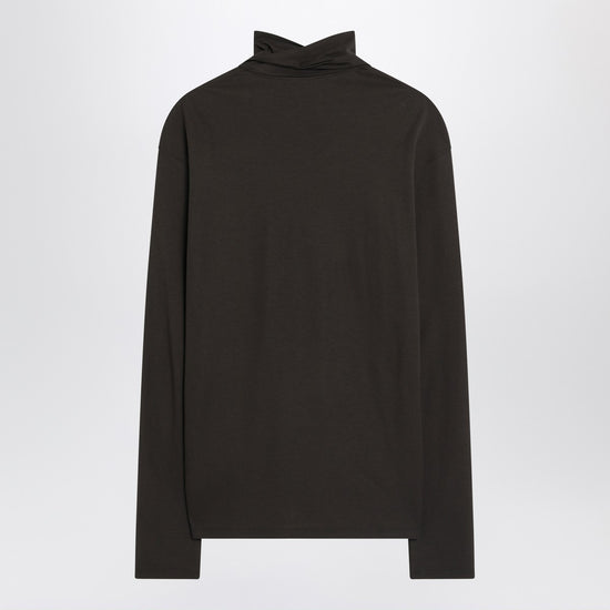 Brown espresso cotton turtleneck sweater by lemaire, featuring an integrated scarf at the neck, long sleeves, and a straight hem. size and fit - model wears size s model measurements: height: 178 cm chest: 83 cm waist: 63 cm hips: 91 cm