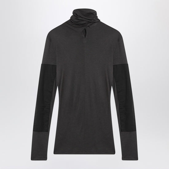 Lemaire grey lightweight silk and viscose-blend jersey top, featuring long sleeves with patches and scarf detail to tie or leave loose at the neck. size and fit - model wears size s model measurements: height: 178 cm chest: 89 cm waist: 62 cm hips: 88 cm