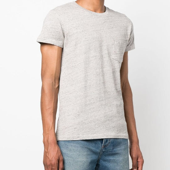Mélange crew-neck t-shirt from levi's featuring light grey, cotton, mélange effect, crew neck, short sleeves, chest patch pocket and straight hem. lvc 1966 501 pocket cotton t-shirt size and fit - this piece fits true to size. we recommend you get your regular size. model is 1,84m / 6ft 1in wearing size m