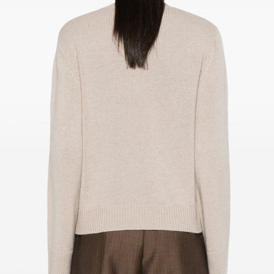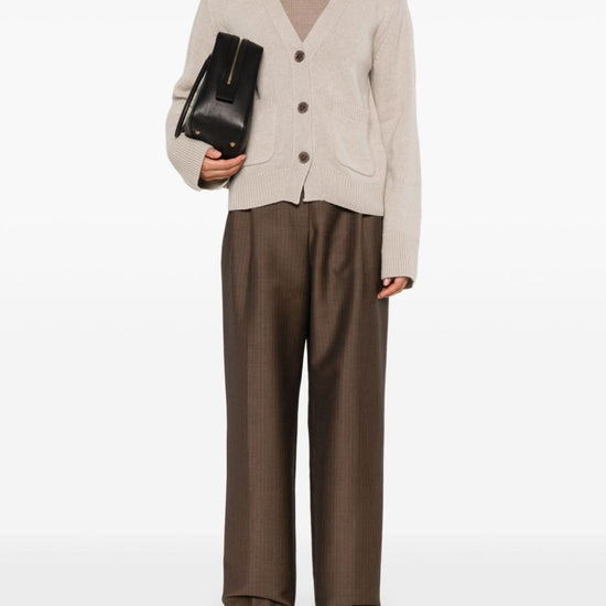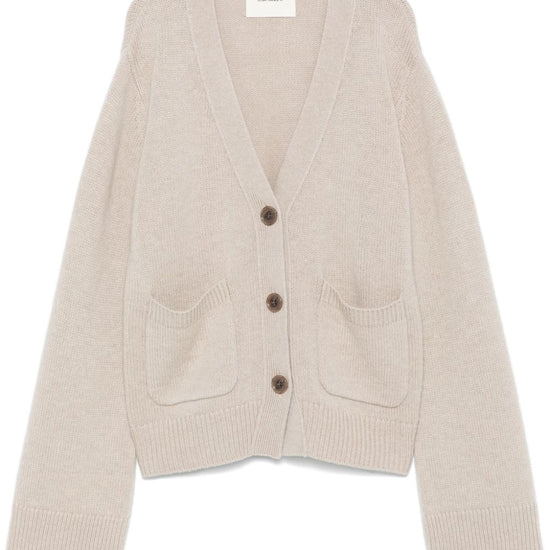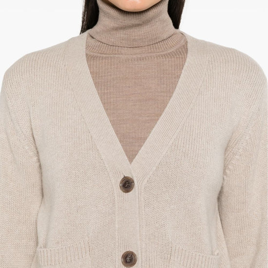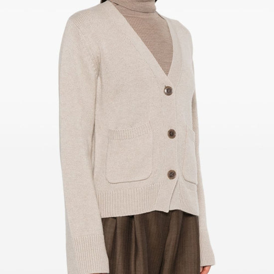 Beige cashmere knitted construction v-neck button fastening long sleeves fitted-cuff sleeves two side patch pockets danni cashmere cardigan